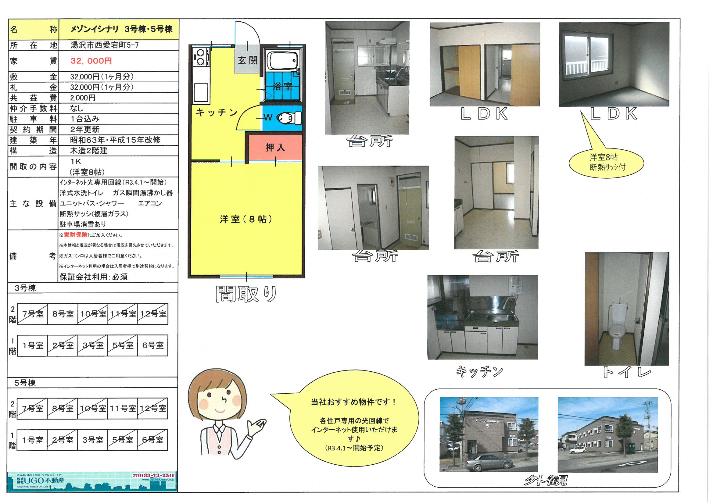 | 設備・条件 | 単身者限定 ペット不可 保証人要 バス専用 シャワー トイレ専用 バス・トイレ別 エアコン 室内洗濯機置き場 地デジ対応 インターネット利用料無料 プロパンガス 公営水道 駐車場有 フローリング | ||